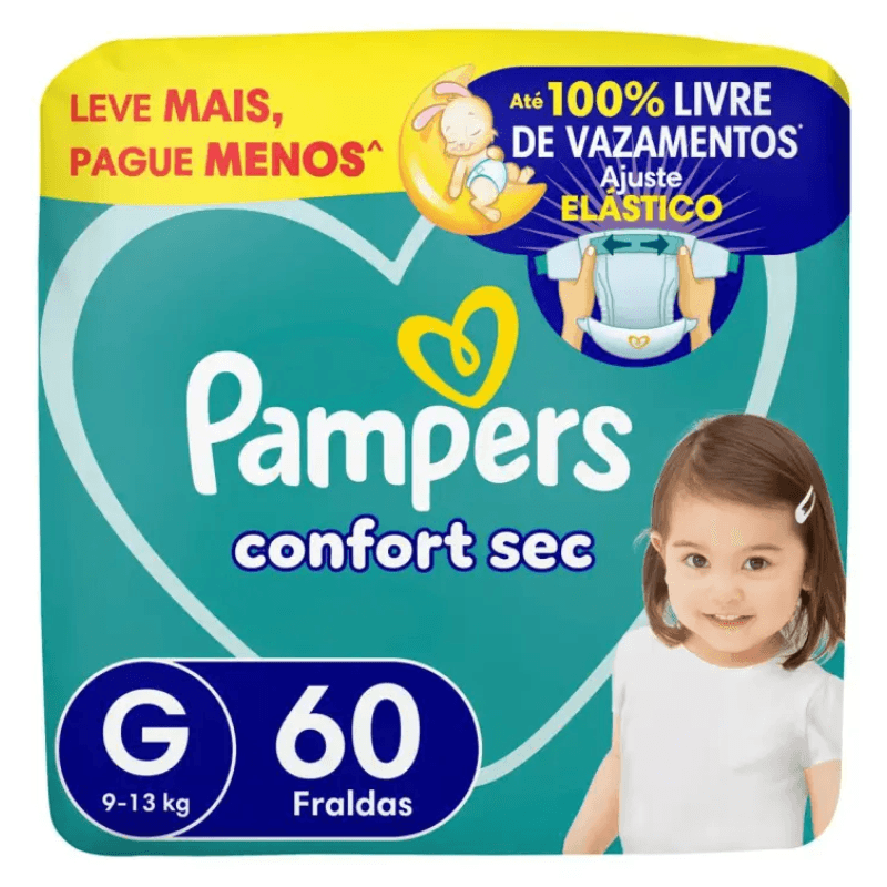 Fralda Pampers Confort Sec Fortbag G com 60 unidades