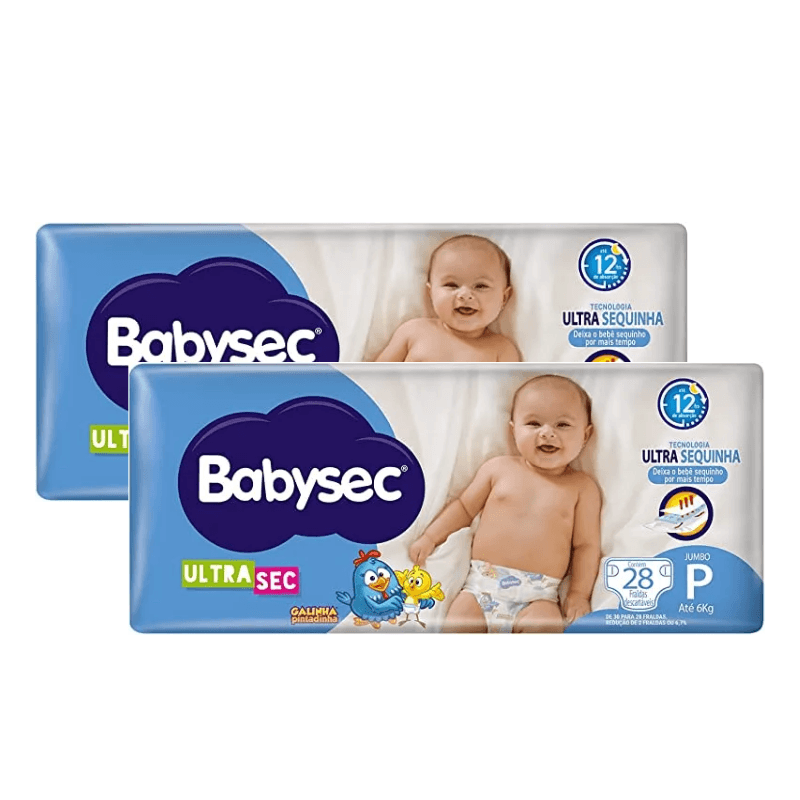 Mamãe e BebêFraldasKit 2 Fraldas Babysec Ultrasec Jumbo Galinha Pintadinha P com 28 unidades