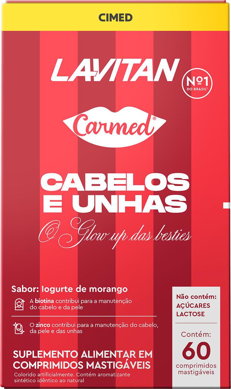 Vida SaudávelVitaminasSuplemento Alimentar Lavitan Carmed Cabelos e Unhas Sabor Iogurte de Morango 60 Comprimidos Mastigáveis